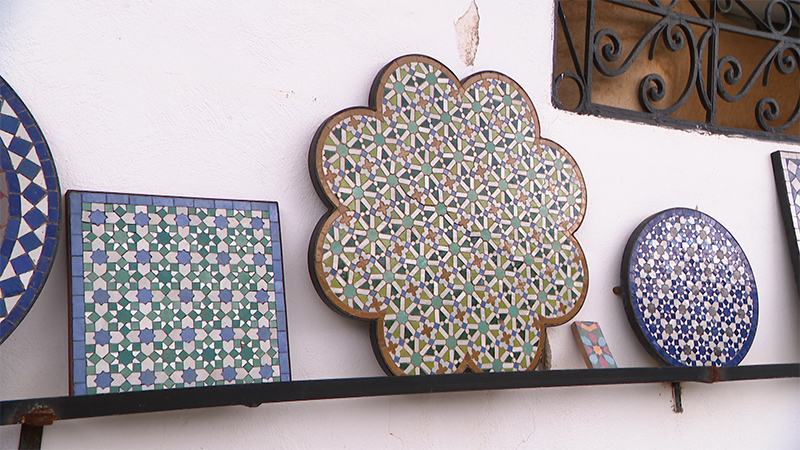 モロッコの伝統工芸・ゼリージュの工房。職人さんが1からタイルを削り、ゼリージュを作る様子が見学できる
