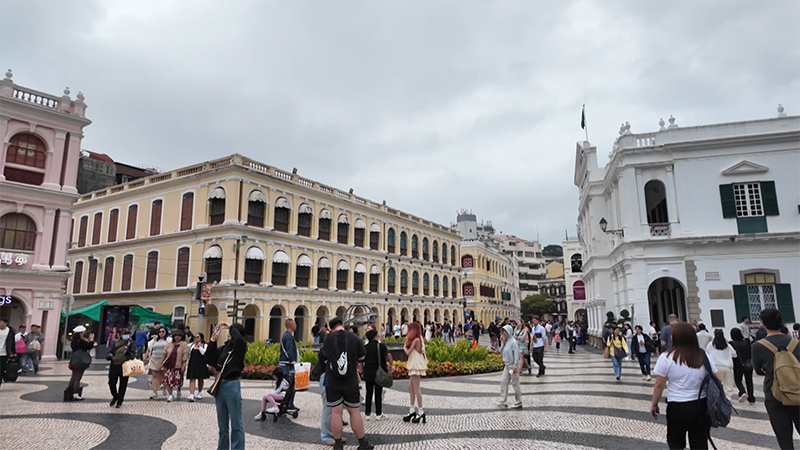 コロニアル建築に囲まれた広場。マカオに点在する世界遺産の一つ。