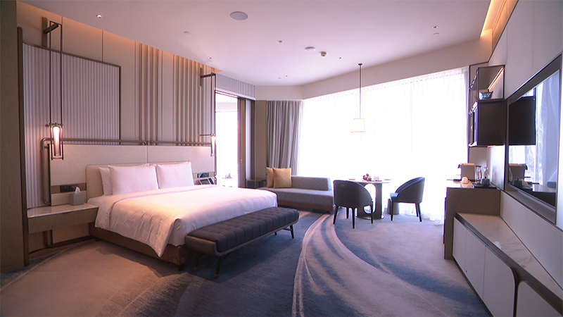 施設内には4つのホテルが入っており、およそ2,500もの客室を擁する。VR体験施設、映画館、マカオ最大のウォーターパークなども入っており、エンターテインメント性抜群。