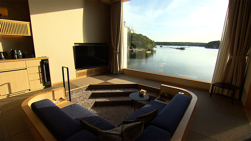 伊勢志摩の英虞湾に面した高台に立つ日本旅館。別邸 漣のはなれ「天月」は英虞湾に隣接したプレミアムスイートルーム。オーシャンビューの展望風呂がついており、優雅なひと時を過ごすことができる。季節の旬の食材を伊勢志摩備長炭で調理した美食炭火焼きプランがおすすめ。
