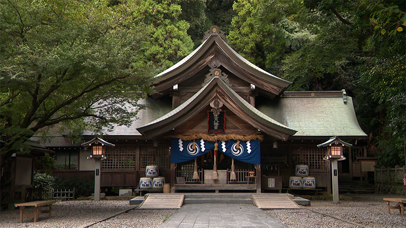 長宗我部元親が戦の時に勝利を祈願していたと伝わる神社。元親が再建した社殿の形は出蜻蛉式と呼ばれていて、トンボは真っ直ぐにしか進まず後ろに戻らないことから、武士には縁起の良い勝ち虫とされていた。