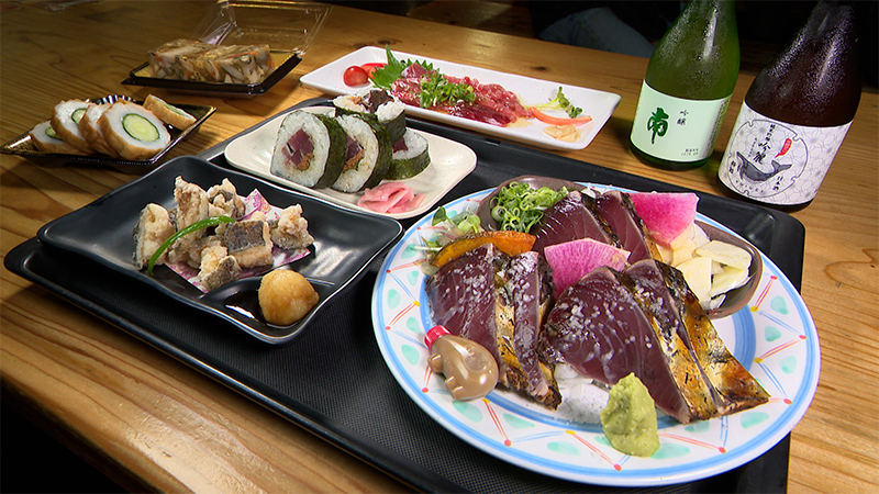 高知名物の鰹のたたきのほか、郷土料理や地酒など多彩な味を堪能できる。