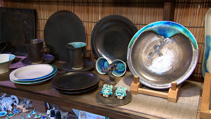 小浜島唯一の陶芸工房。直売所もあり、小浜の海や自然を思い出させるような作品が並ぶ。