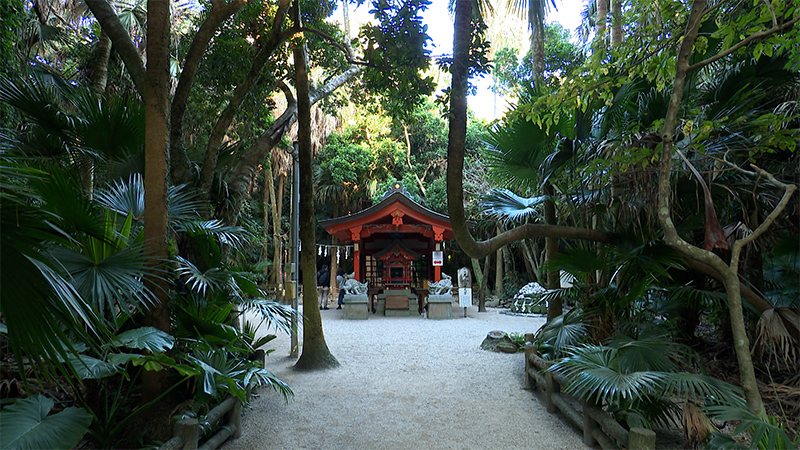 神話「海幸彦・山幸彦」の舞台でもある。境内の亜熱帯性植物群ビロウ樹は、国の特別天然記念物に指定されている。境内の中心部にはビロウ樹に囲まれた、古来より神事が行われた元宮が祀られている。