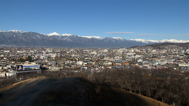 大天守の最上階からは松本市と北アルプスなど周りの山々の景色を一望できる。