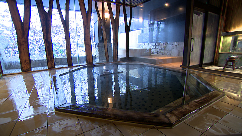 館内には三つの浴場があり、自然を間近に感じられる「立ち湯」は森と一体になるような心地よさを味わえる。夕食は信州の食文化を楽しめる和食のコースのほか、フレンチもある。