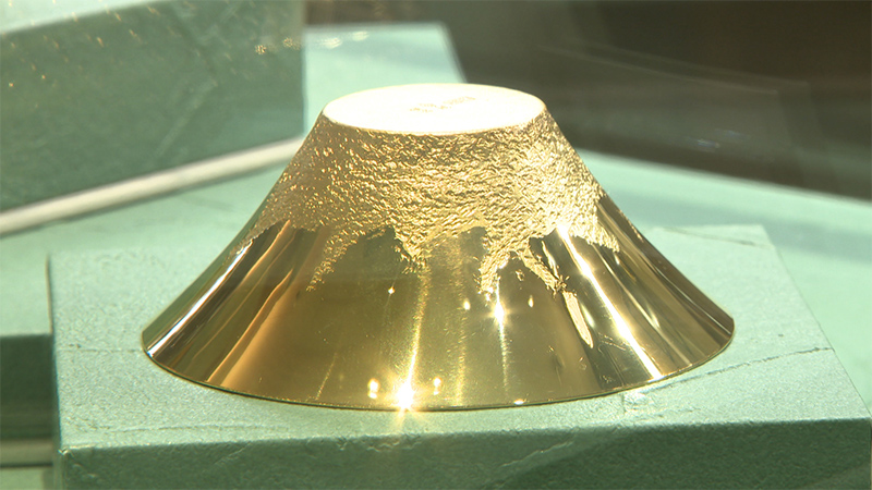 資産としてだけでなく、茶碗や水差しなど工芸品として優れた金細工の作品が並ぶ。
