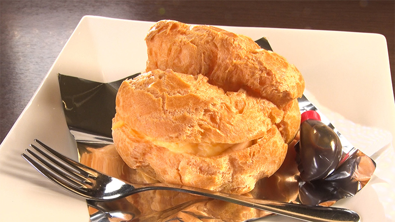 1948年創業の老舗レストラン。一番人気のビーフカレーは隠し味にパインやリンゴを長時間煮込んだ、こだわりのひと品。街の方が記念日などに食べるという、重さ約2kgの特大シュークリームは、卵たっぷりのカスタードとフルーツがたくさん入っている。