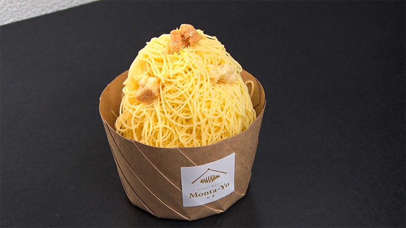 地元特産の加賀野菜・五郎島金時芋を使用し、北陸の名峰で日本三名山の一つ・白山をイメージして丁寧に折り重ねたスイーツを販売。絞りたてモンブランは五郎島金時の優しい甘さを生かした、1番人気の商品。